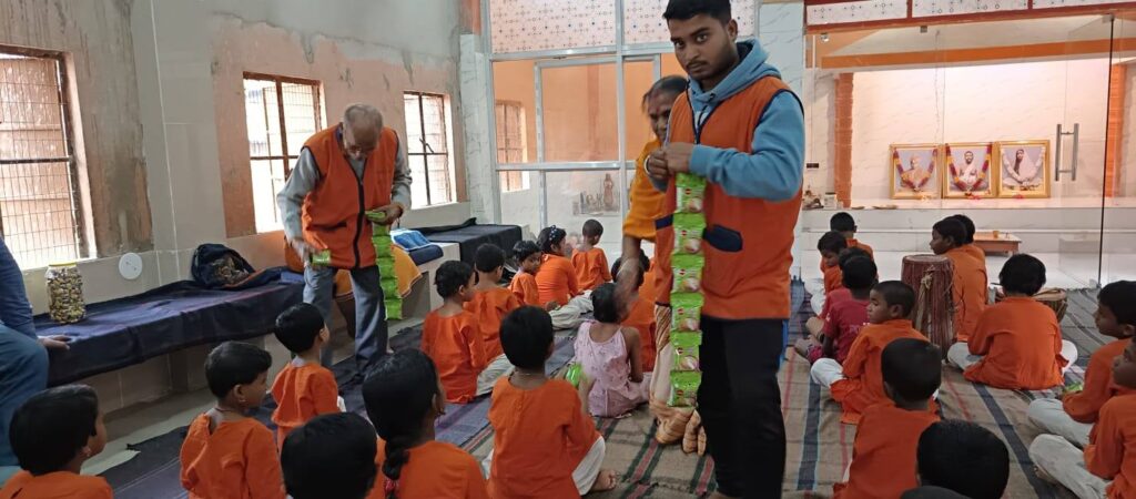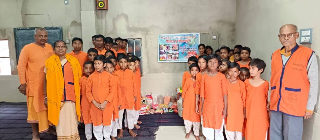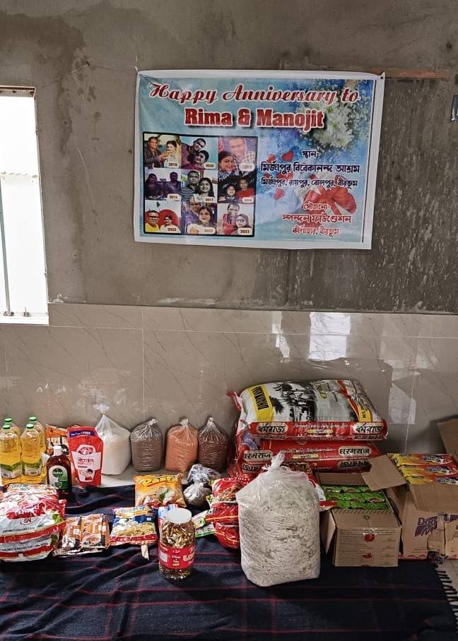 Following their request, Spandan Foundation members — Pintu, Santu, and Suman — along with the couple’s parents, visited the Mirzapur Orphanage near Bolpur. There, they distributed monthly ration supplies to the children.