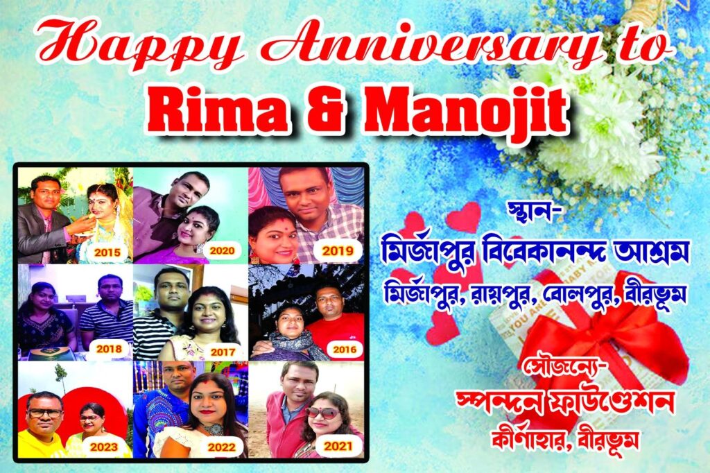 Last Thursday marked the wedding anniversary of Mrs. Rima Devi and Mr. Monojit, residents of Bolpur. Though they currently live abroad, their hearts remain deeply connected to their homeland.