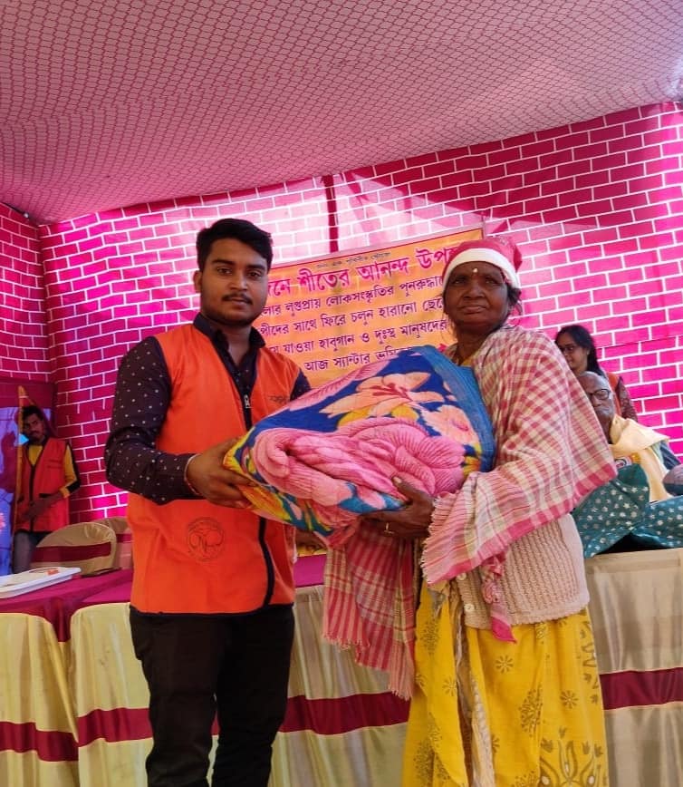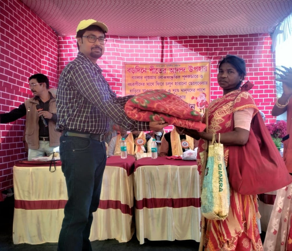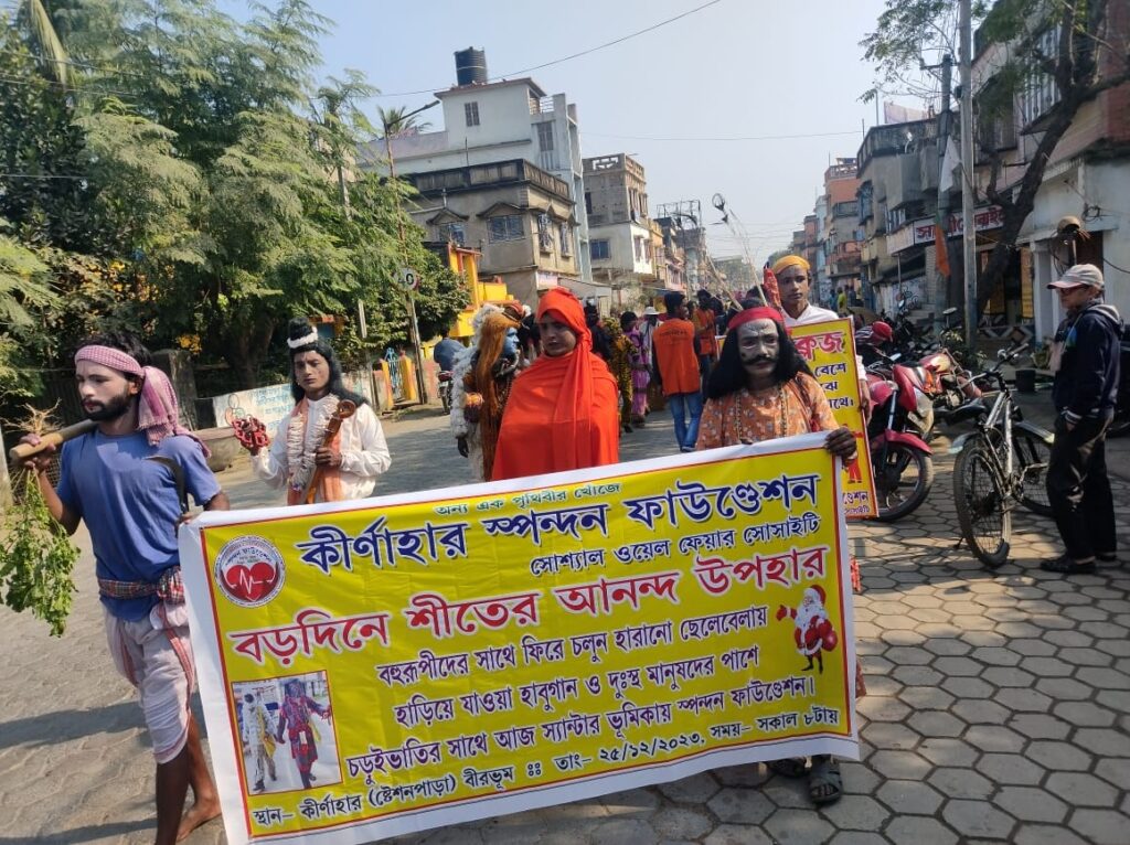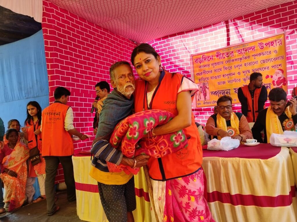 On 25 December, 2023 (Monday), just like every year, Spandan Foundation celebrated Christmas in a meaningful and compassionate way. This year’s program was truly special—designed not only to support people in need but also to revive the nearly forgotten folk traditions of Bahurupi and Habu Gaan.