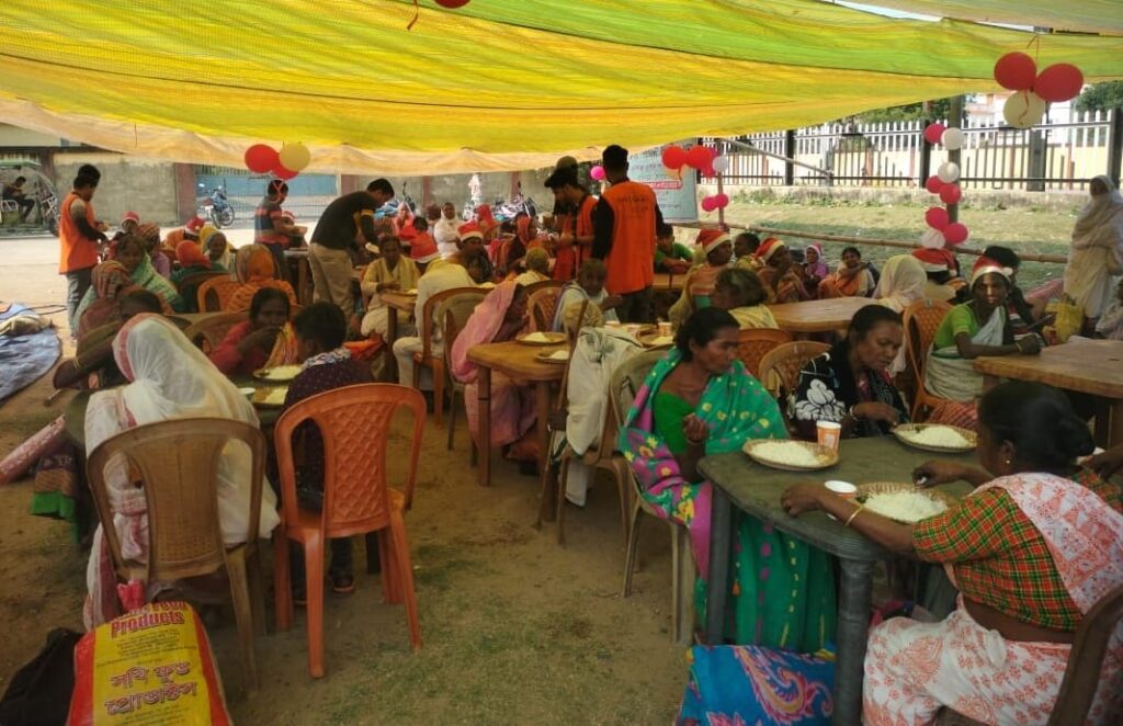 received warm winter blankets as Christmas gifts. Along with the blanket distribution, Spandan Foundation arranged snacks and a community meal, which brought joy and smiles to everyone present.