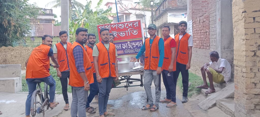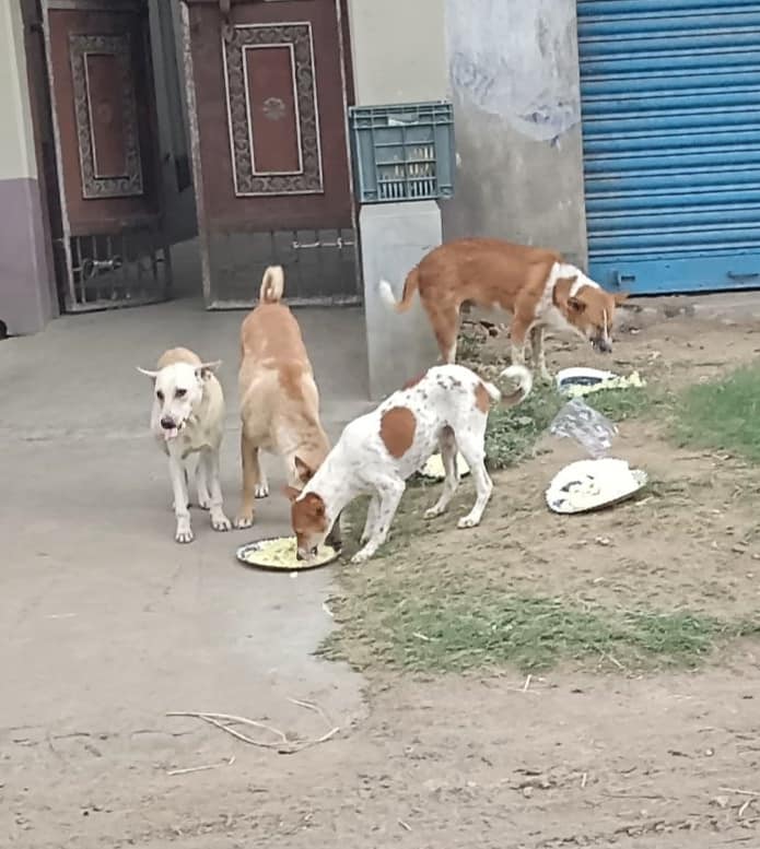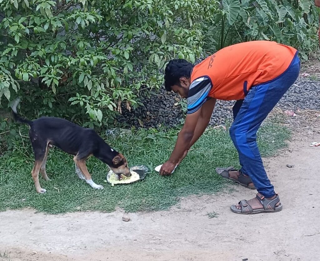 Spandan Foundation organizes a weekly feeding program for street animals.