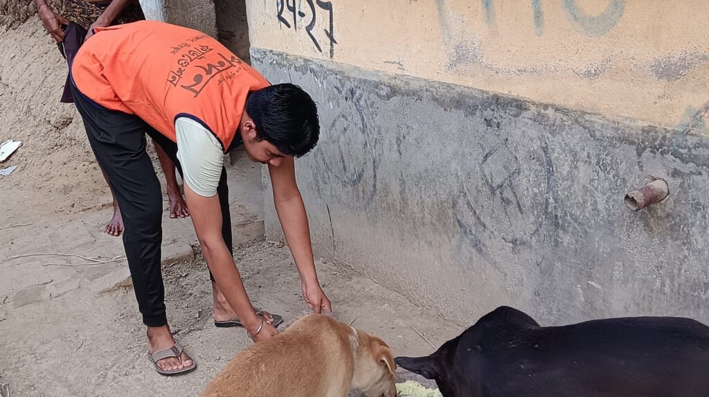 Kirnahar Spandan Foundation and the members of Aligram Bajrangbali Sangha together provided food, water, and doctor-advised medicines to the street dogs.