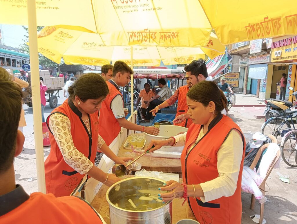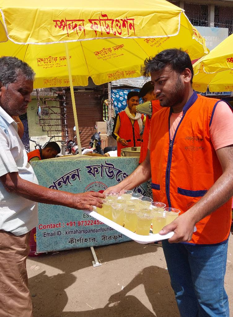 As the scorching heat of the summer sun continues to challenge daily life, Spandan Foundation stepped forward with a heartfelt initiative to bring relief and comfort to the people of Kirnahar. On a particularly hot day in the month of Baishakh, the Foundation organized a Jolchatra—a refreshing drink distribution program—at Kirnahar Bus Stand.