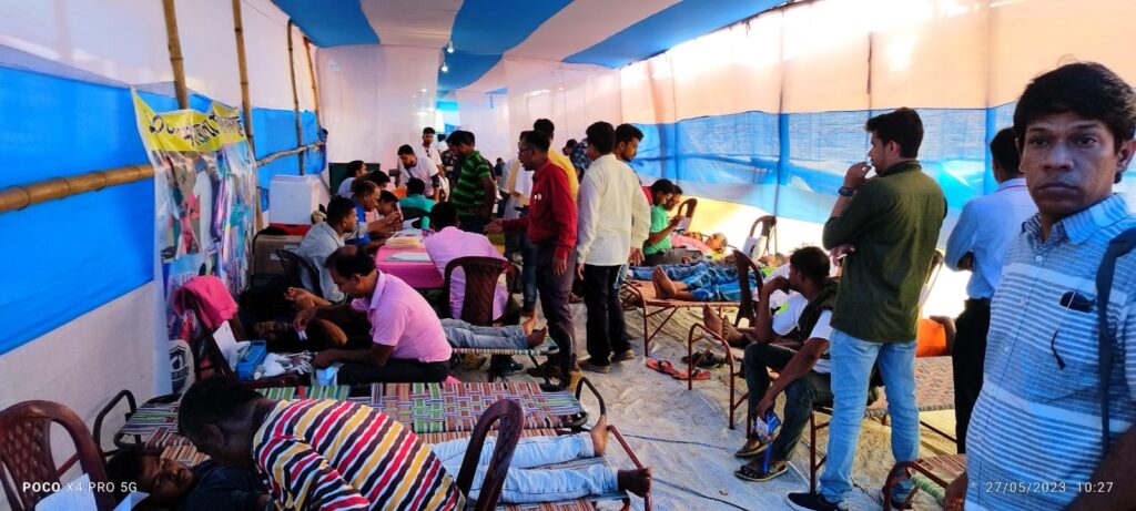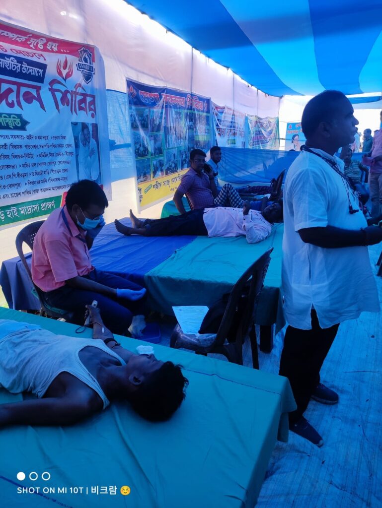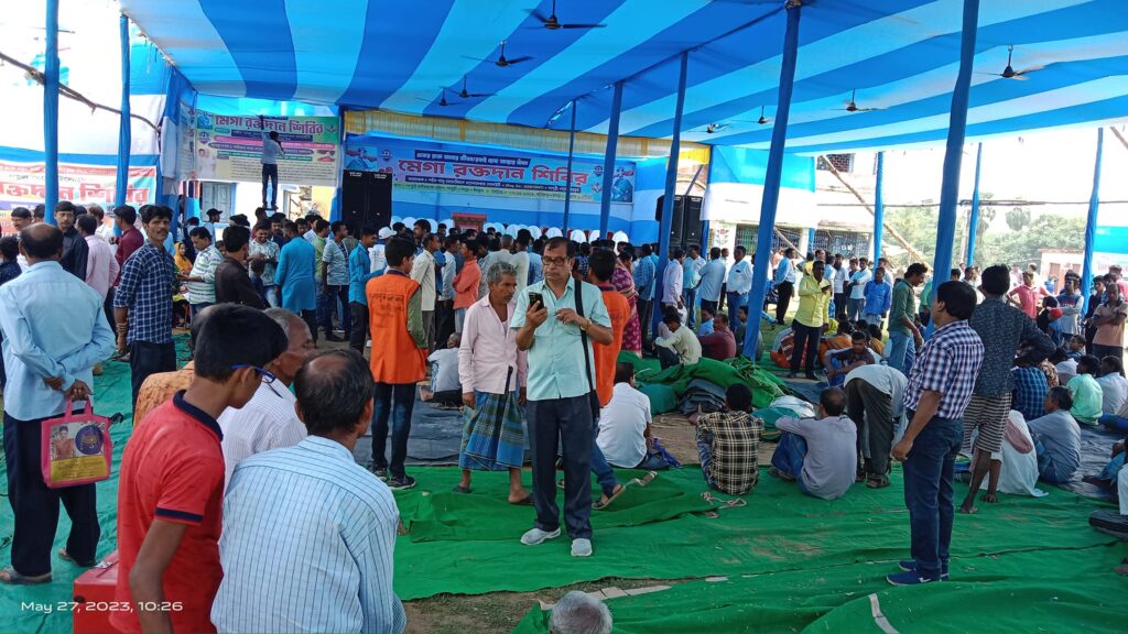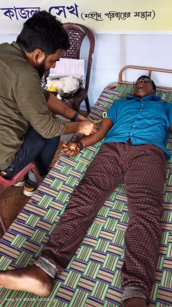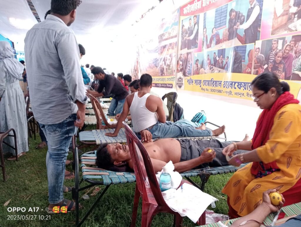 On 27 May 2023 (Saturday), a remarkable Mega Blood Donation Camp was organized at Papuri village in Nanur, Birbhum. The event was initiated by the Shahid Saju Memorial Welfare Society under the leadership of the dedicated social worker Kajal Sheikh.
