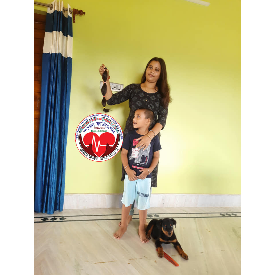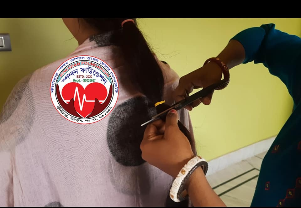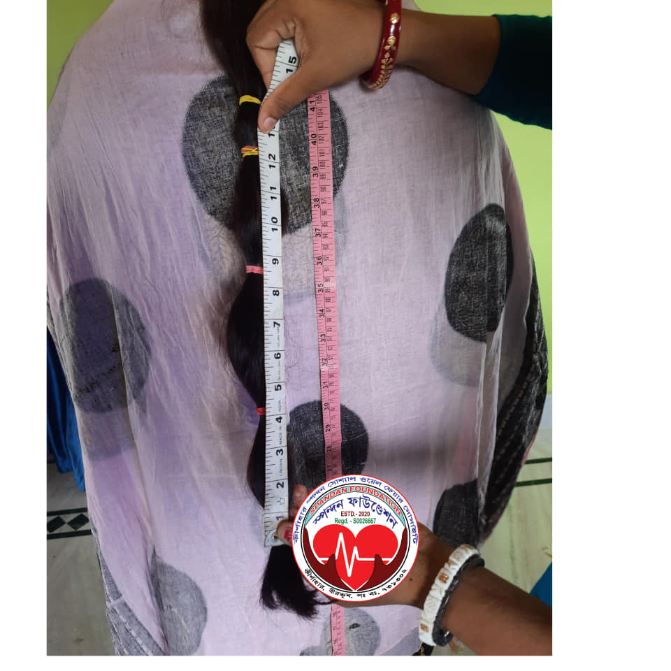 Motivated by her desire to support more people, she reached out to Timna Raychaudhuri, the Treasurer of Spandan Foundation, expressing her wish to donate her hair on this memorable day. As promised, our team visited her home and helped fulfill her heartfelt desire.