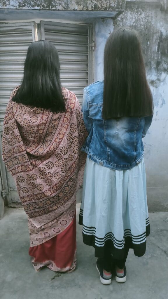 One of our dedicated members and social workers, Kismatara Khatun, expressed a noble desire: she wished to donate her hair to support cancer patients who lose their hair during treatment. Inspired by her daughter’s selfless wish, her mother, Sabila Khatun, also came forward to donate her hair.